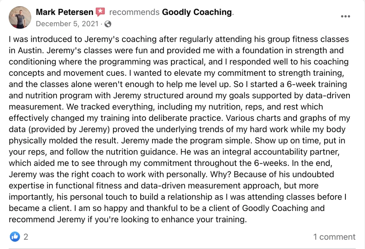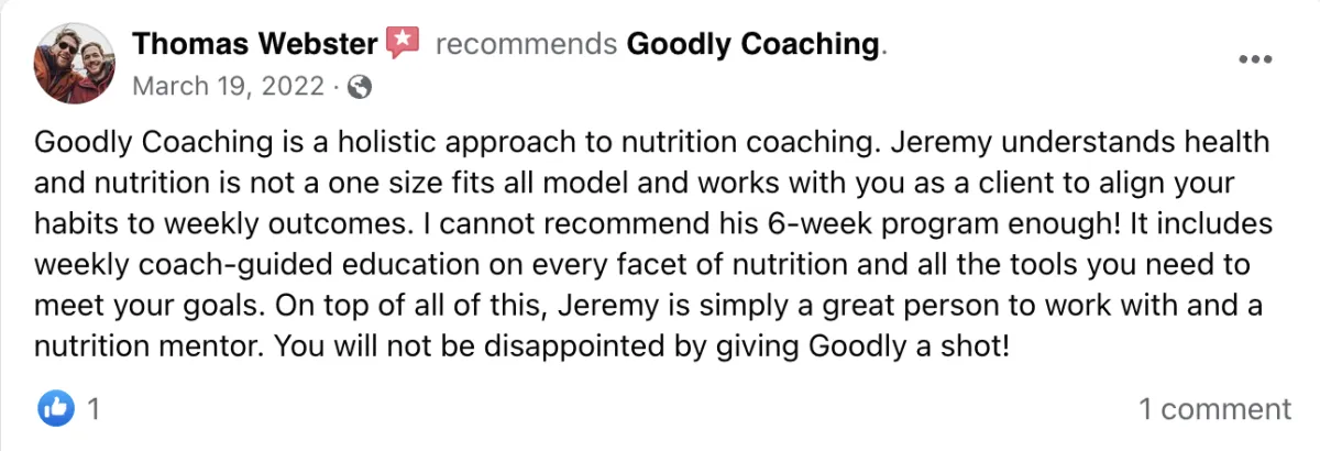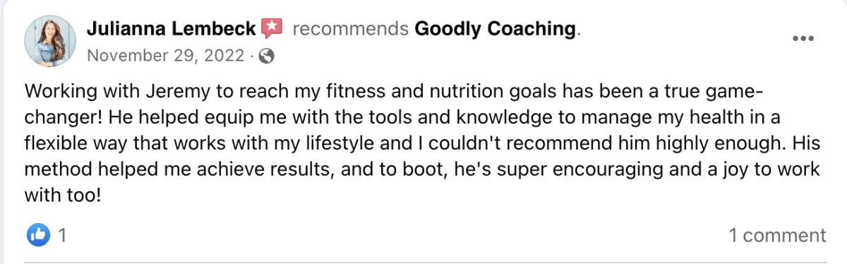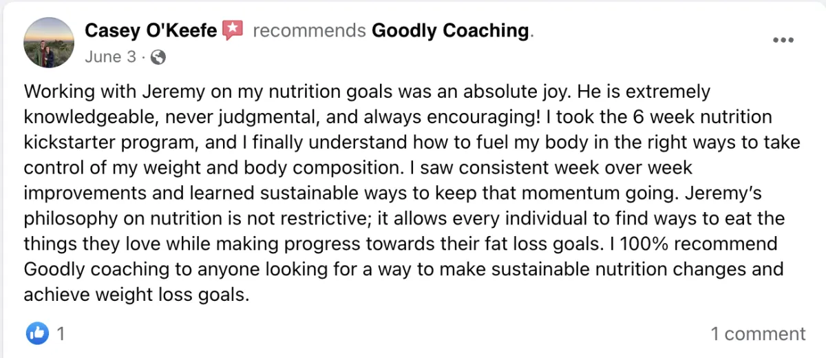 A nutrition protocol designed specifically for your likes/dislikes and goals. No more fad diets or hard to follow nutrition plans. After all, if you aren't going to be able to stick to the plan then what's the point? Our nutrition approach is the perfect combination of easy to follow and FAST (but sustainable) results.